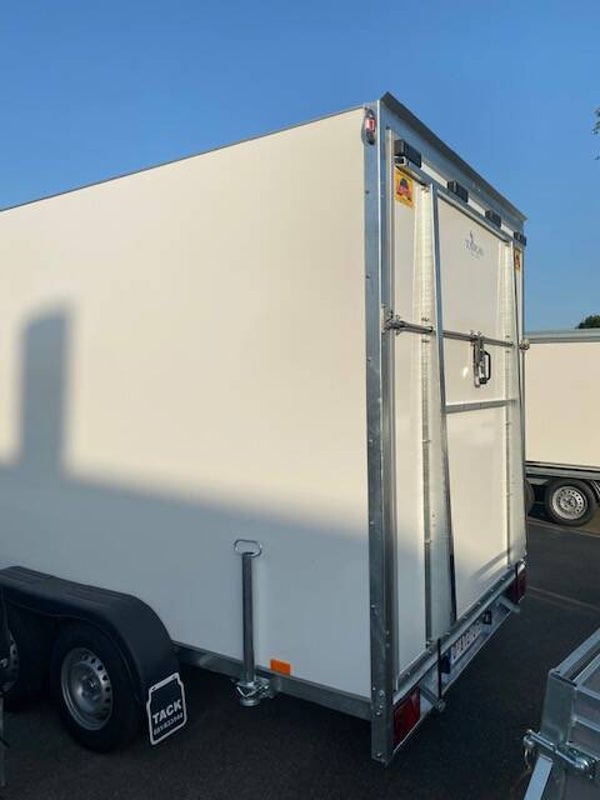 Metalen verzinkte chassis Tussen de wielen Zijkanten in sandwich paneel 30mm (polyester-isolatie-polyester) Bindrail binnenin links + rechts Sjorogen in de bodem Afgeronde voorhoek 2 assen Steunpoten achteraan gemonteerd
