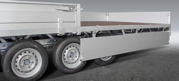 Robuust Chassis Touwhaken onder laadvloer Achterklepondersteuning Sjorogen in randprofiel 2 delige zijdeuren vanaf 5m lengte LED zijmarkering Multiplex bodem Neuswiel neerklapbaar