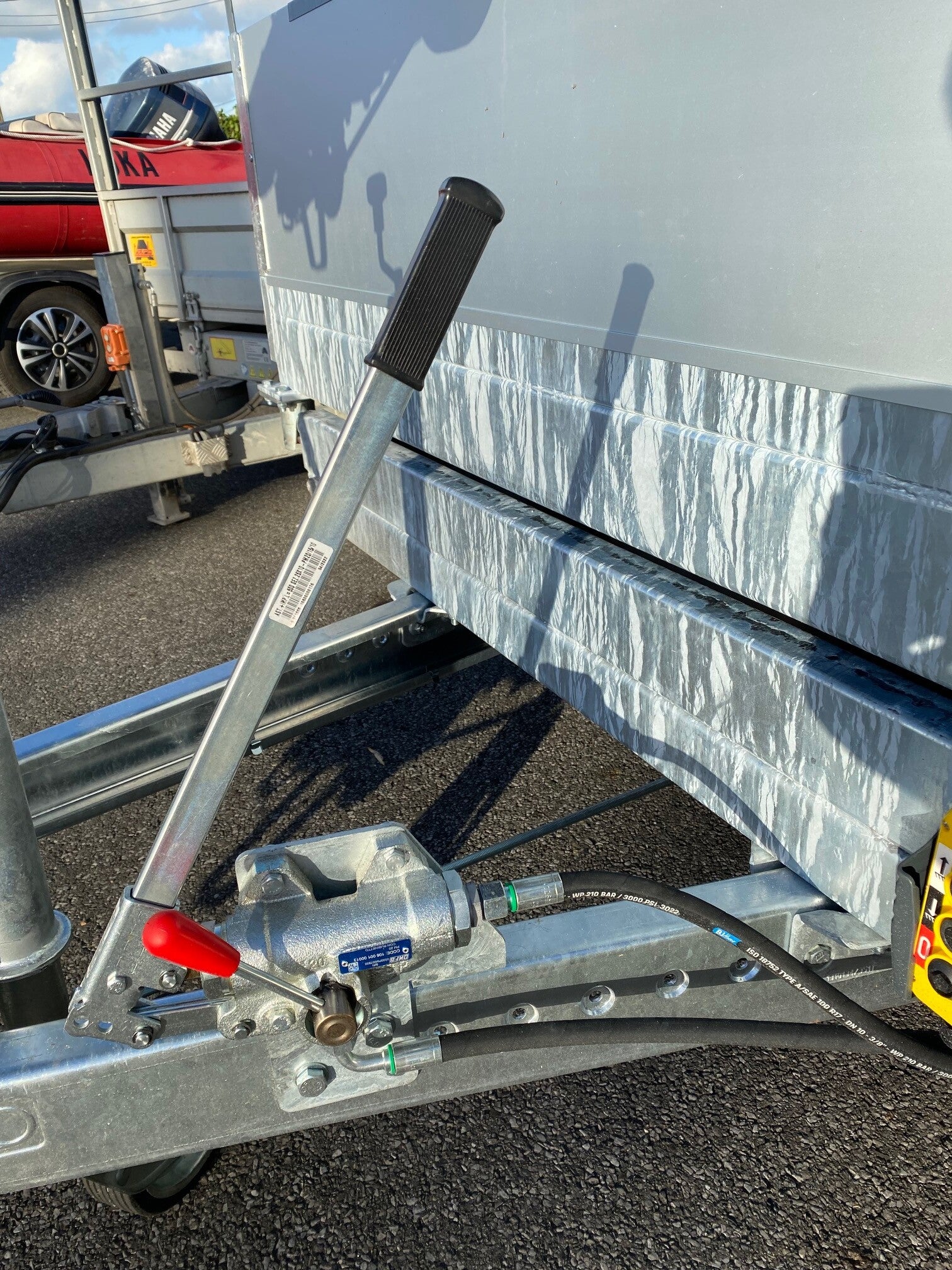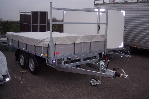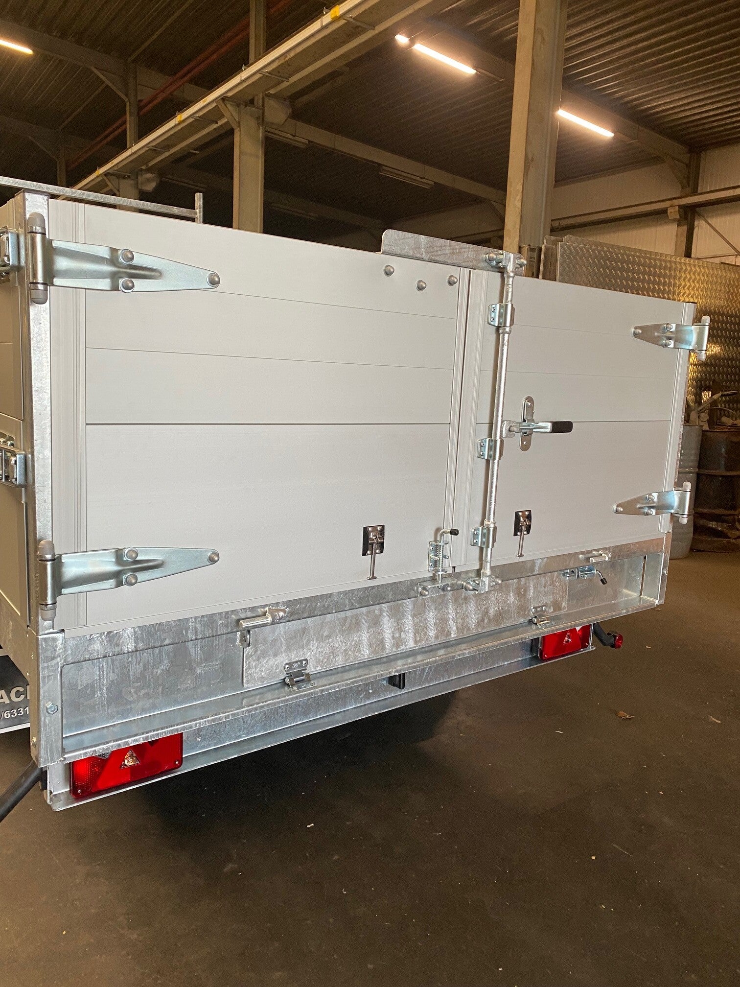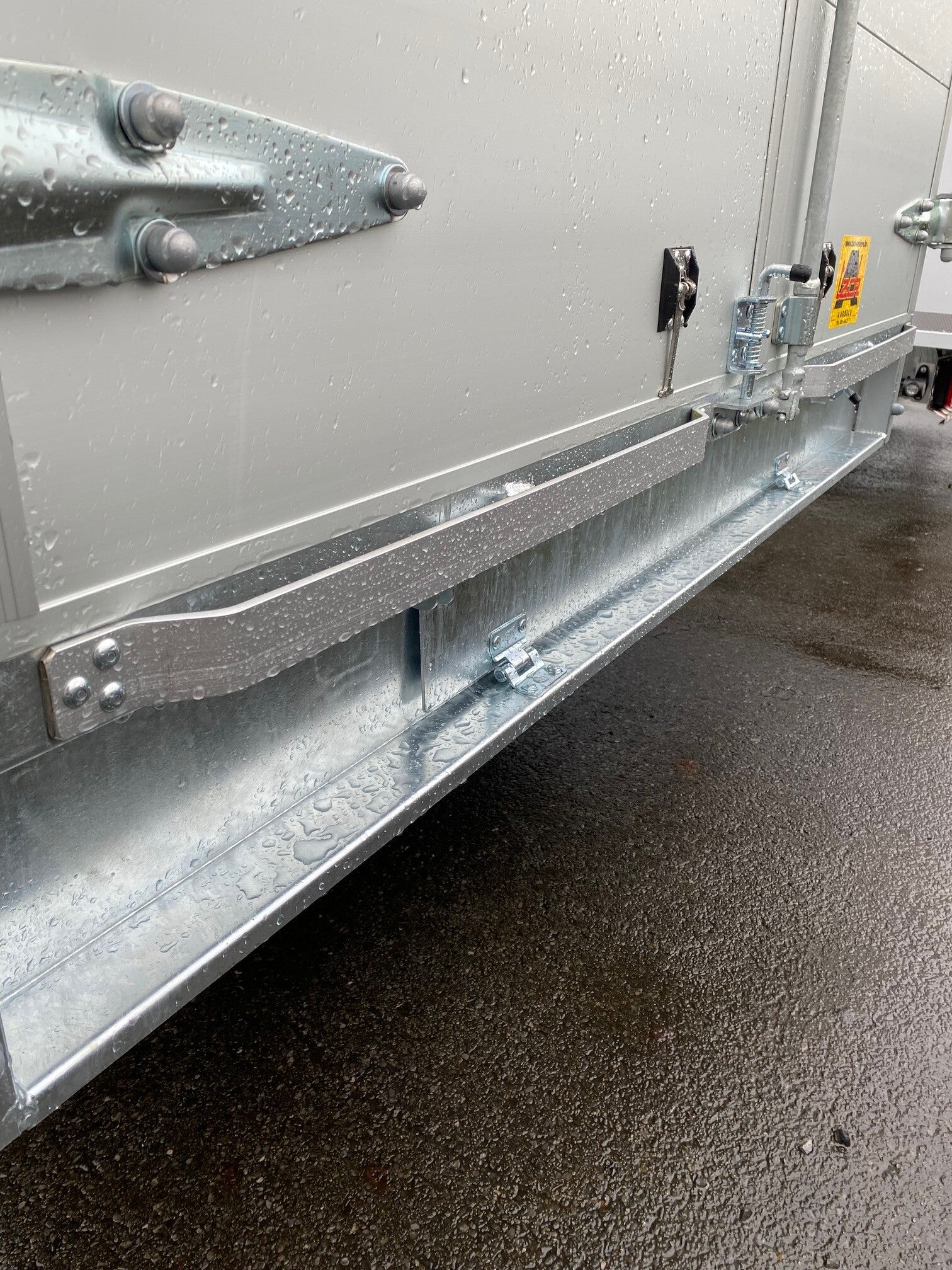 Vlak zeil kader en zeil Steunpoten Verlaagd Chassis Composiet bodem Heavy Duty: Druksterkte 3,5ton/cm² Eigen gewicht composiet: 2,10kg/m² wordt in de ahw gelijmd 3 zijdig kippend Noodhandpomp (kipper) LED Verlichting Veiligheidsset opritten: Lip van de opritten rust op de bodem v/d ahw het veiligheidsplaatje wordt tss randprofiel en buis gehangen om afglijden te voorkomen. ! NIET geschikt voor opritten met Haak aansluiting. Dit dient niet om de opritten in te haken!